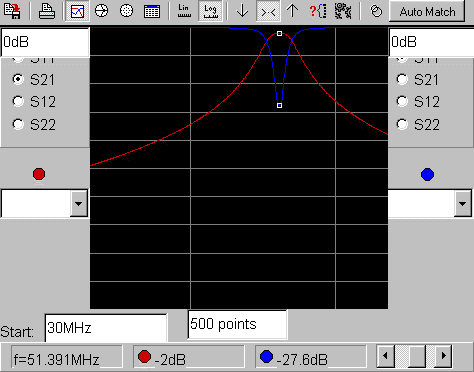 aber der Abgleich ist kritisch! S21 geht von -3,3dB (50 MHz); -1,8 dB (51 MHz); -2,0 dB (52 MHz). Fern wird s21