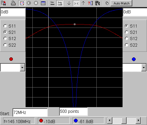 breitbandiger. Das Beispiel zeigt eine Anpassung RG = 50; RL = 5; F = 145, der dargestellte Bereich